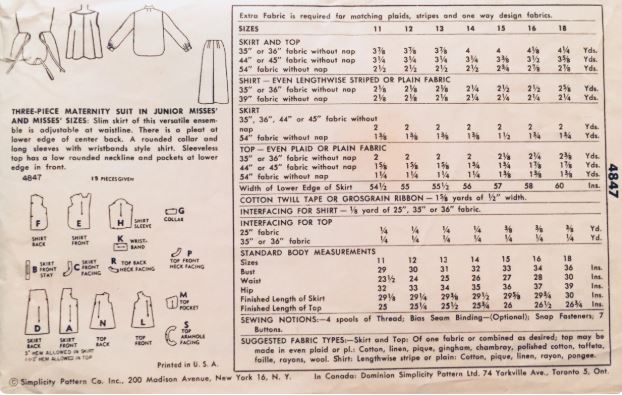 50s A Maternity Sleeveless Tent Top w/ Pockets Button Front Classic Blouse & Matching Skirt Womens Suit Petite Vintage Sewing Pattern Simplicity 4847 B32