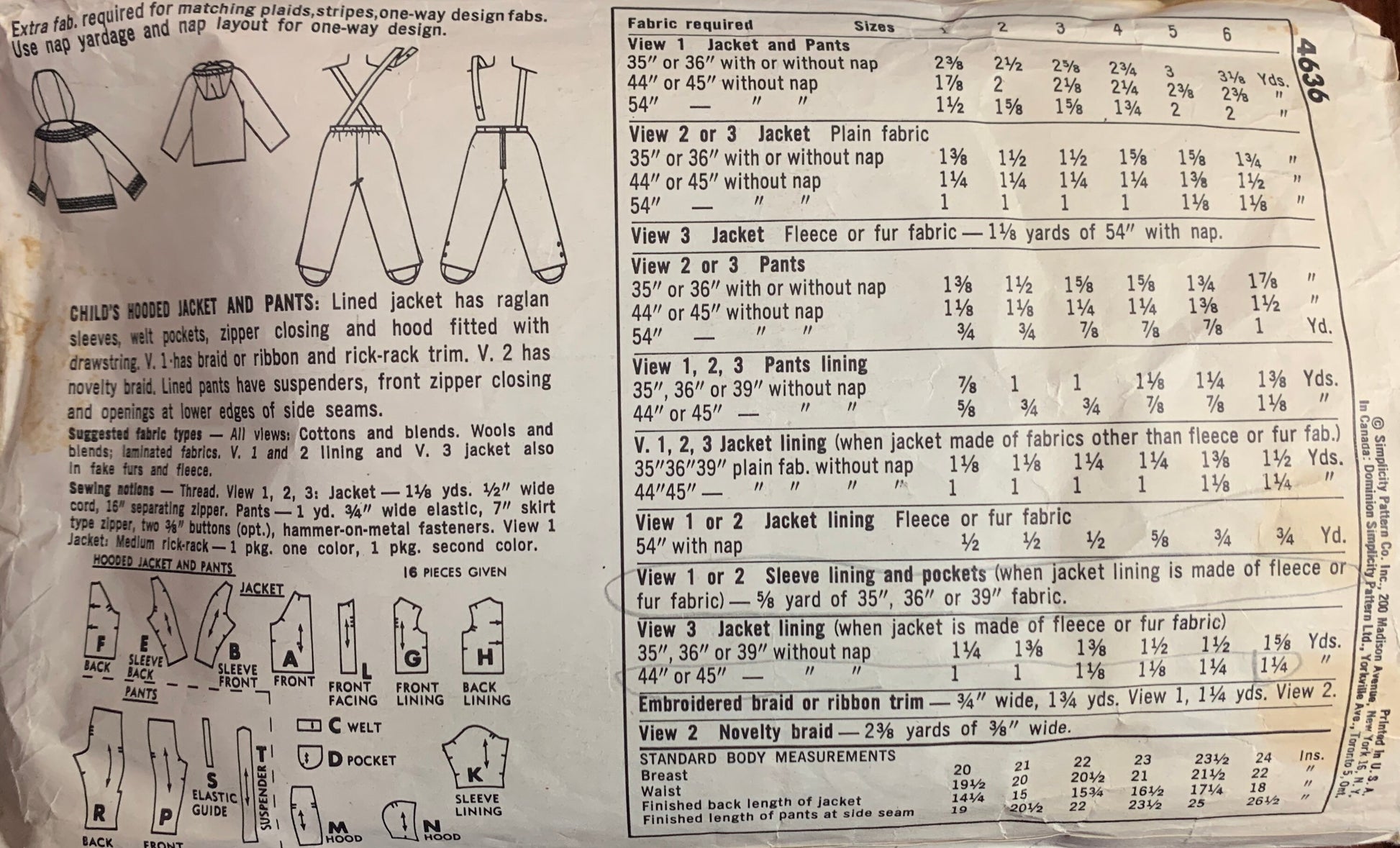 50s Childrens Snow Suit Parka Coat Snow Pants Outerwear Ski Pants Vintage Sewing Pattern Simplicity 4636 6