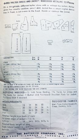 50s Womens Fitted Day Halter Dress w/ Matching Jacket Suit Petite Vintage Sewing Pattern Butterick 6493 B32
