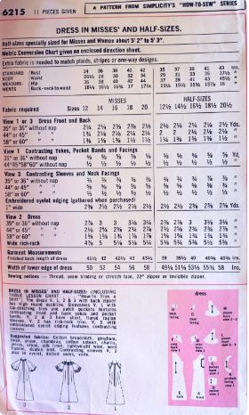 This is an original printed pattern. It has been previously used but is complete. Dress in Misses' and Half-Sizes: (Including Tissue Lesson Chart ... "How-To Trim a Shift"). The dress V. 1, 2 & 3 with back zipper has high round neckline. Sleeveless V. 1 with top-stitching trim and patch pockets features contrasting front and back yokes and pocket bands. V. 2 & 3 have short, flared raglan sleeves. V. 2 has rick-rack trim. V. 3 with embroidered eyelet edging features contrasting sleeves.
