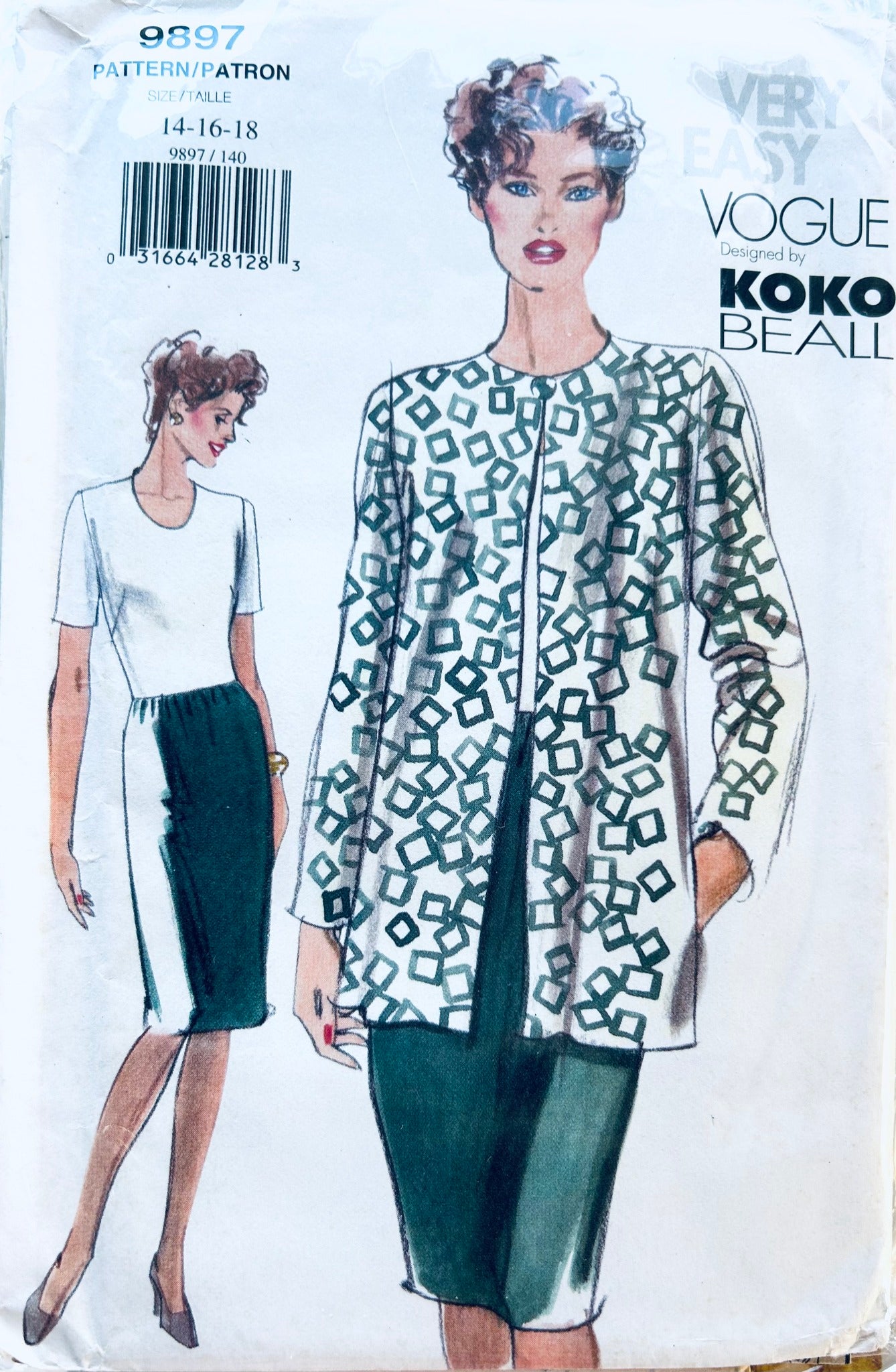 90s Womens Suit w/ Boxy Jacket Blouson Dress Koko Beall Designer Plus Size Easy Sewing Pattern Vogue 9897 14 16 18