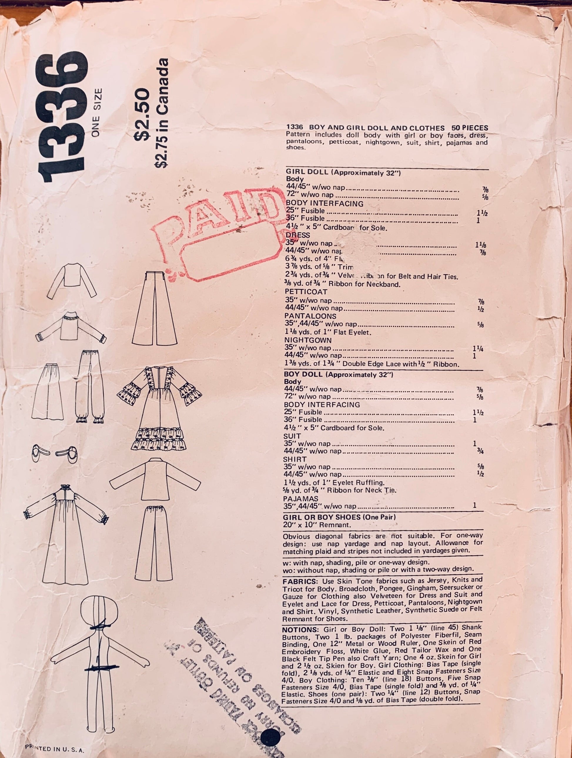 This is an original printed pattern. It has been partially cut. Boy and Girl Doll and Clothes: Pattern includes doll body with girl or boy faces, dress, pantaloons, petticoat, nightgown, suit, shirt, pajamas and shoes. So cute for your little one, or for a bride and groom decoration at a cottagecore wedding.